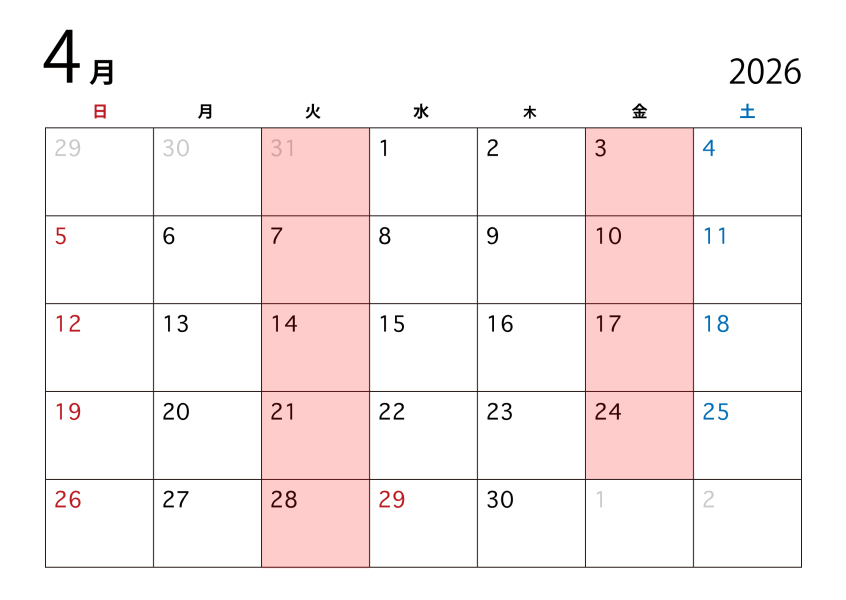 定休日は火曜日と金曜日、祝日になります。